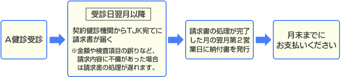 受診料金については、受診後にTJKより事業所宛てに納付書をご送付いたします。くわしくは以下をご覧ください。