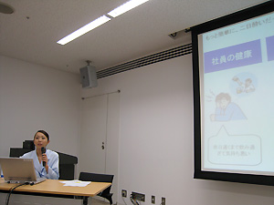 第二部は、「健康経営、メタボリックシンドロームについて」、「食事について」、「運動について」の3つのテーマに分けて、講義が行われました。