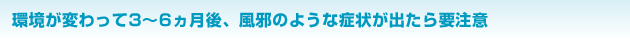 このバランスというのは、環境が変わったときに崩れやすい傾向にあります。環境が変わってだいたい3~6ヵ月経ったころ、これが疲労のピークなんですね。この疲労のピークのときに、実は体の不調を訴えるのです。
