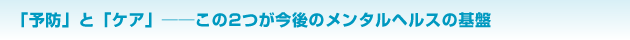 メンタルヘルスには二つあって、予防と治療、この二つの面から考えていったほうがよいのではと思っています。
