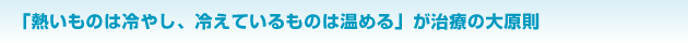 このように、足りないものを何かで補うことで陰陽のバランスをとる。これが治療の大原則なのです。「熱いものは冷やせ、冷えているものは温めろ」という、非常に単純明快なことなのです。