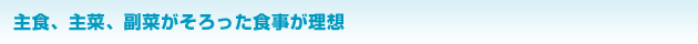 必要な栄養素を、過不足なく、バランスよくとれる理想の食事とは、主食、主菜、副菜がそろった食事です。これに加えて、乳製品と果物をそれぞれ1日1回とると、さらにバランスはよくなります。
