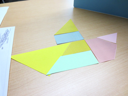 最後に、参加者全員で「パズルゲーム」を行いました。二人一組になり、一人が言葉だけで誘導し、相手に自分と同じ形のパズルを作ってもらう、というゲームです。制限時間を終えて答え合わせをしてみると、微妙に位置がずれていたり、あるいはまったく違う形になってしまったりと、言葉だけで伝えるのがいかに難しいかを実感できるゲームでした。