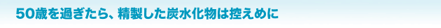 食事の面でもう1つ、大切なことがあります。それは、50歳を過ぎたら精製した炭水化物をとり過ぎない、ということです。