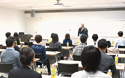 目に見えないココロの問題に、禅の精神と理系メソッドで向き合いビジネス感覚で講義するメンタルヘルス研修。旬のキーワードである「マインドフルネス」を軸に、どこでも気軽にできる立位での心の鎮め方など、シゴトでもプライベートでも活用できる内容とあって、若手社員を中心に人気が高い。