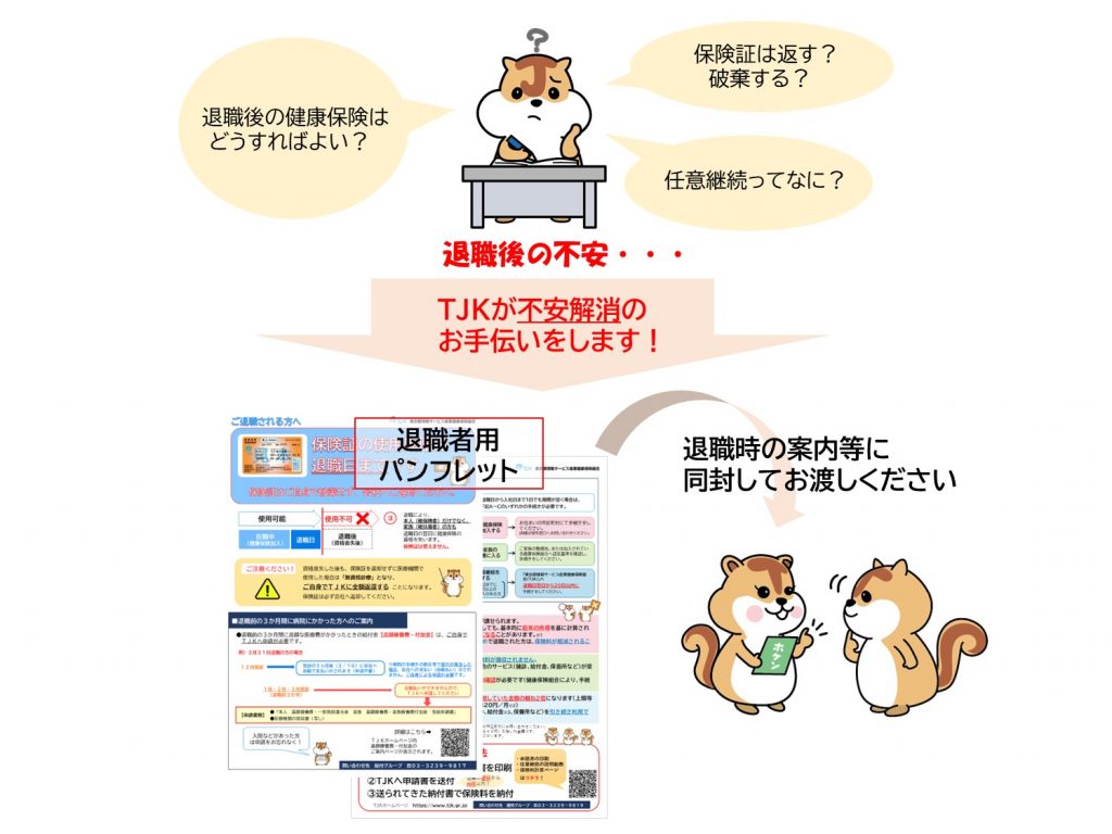 退職後の健康保険に関する案内資料(パンフレット)をリニューアルいたしました。当組合に寄せられるお問い合わせを参考に、よくある疑問にお答えできるよう改善しておりますので、退職予定の社員の方への案内資料として、ぜひご活用ください。