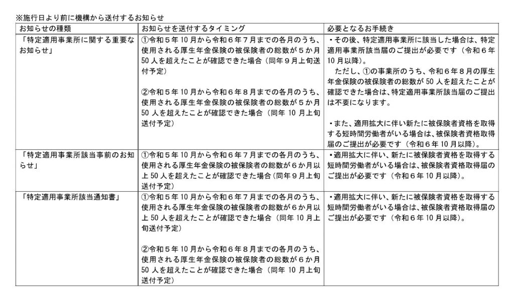 対象事業所は、日本年金機構より「特定適用事業所該当事前のお知らせ」を受信