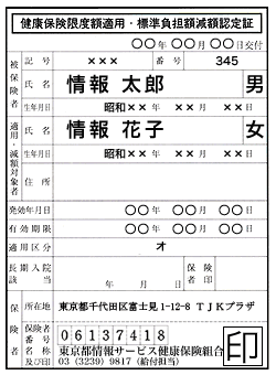 認定証の申請をした方で標準負担額の減額を承認した方に対しては、「限度額適用・標準負担額減額認定証」を交付いたします。医療機関の窓口に提出してご利用ください。なお、承認期間を過ぎた場合やTJKを脱退した場合はすみやかにTJKへ返還してください。