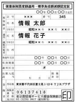 限度額適用・標準負担額減額認定証見本(低所得者用)