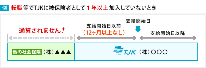 ●支給開始日以前のTJKでの加入期間が12ヶ月に満たないとき