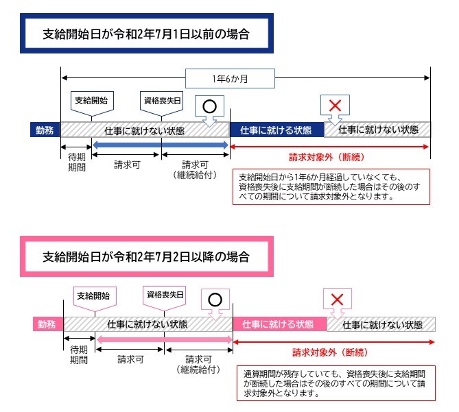 *令和4年1月1日から、法改正による「支給期間の通算化」が施行されます - 請求期間中に資格を喪失したとき、要件を満たすと継続して請求できる場合があります