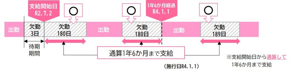 傷病手当金の支給期間 (令和4年1月1日より「支給期間の通算化」施行)