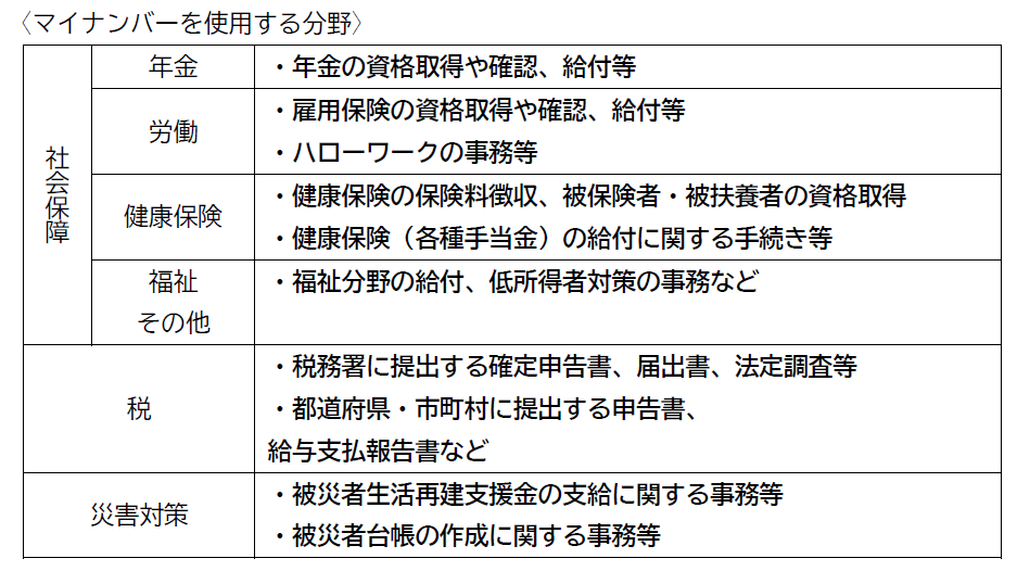 マイナンバーの用途