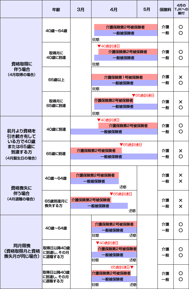 5月31日に65歳に達する場合…上記とは逆に資格喪失月である5月分から健康保険料のみTJKに納付し、介護保険料は市区町村に納付。