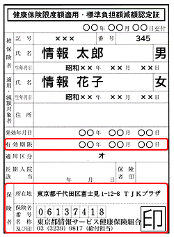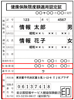 - 「東京都情報サービス産業健康保険組合」と記載されているものをお送りください。他の保険者(健康保険組会、協会けんぽ 等)が発行した限度額適用認定証はお預かりできませんので、発行した保険者へご返却ください。
