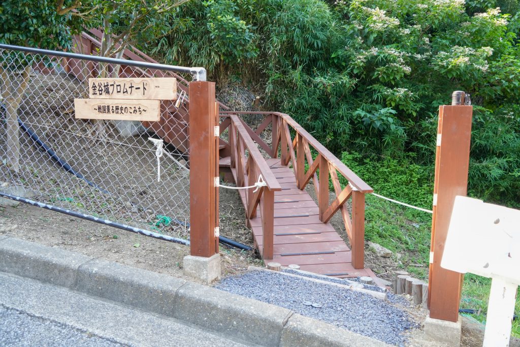 そしてこの度、貴重な歴史的遺構である「二重堀切」跡地と「四脚門」跡地をつなぎ、金谷城の城塁を歩く遊歩道「金谷城プロムナード ~戦国薫る歴史のこみち~」を整備いたしました。