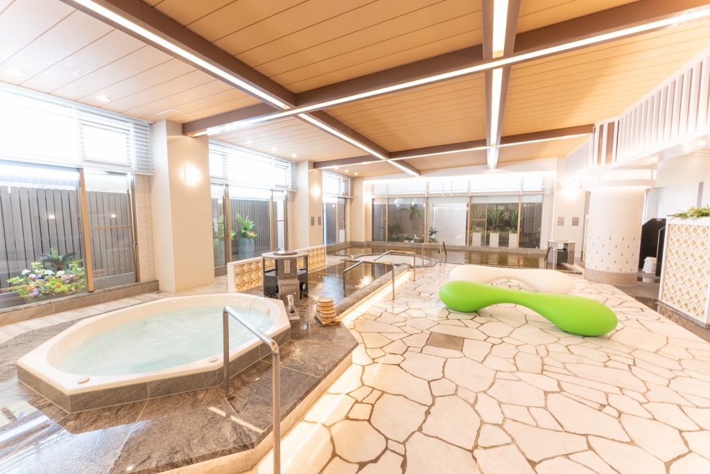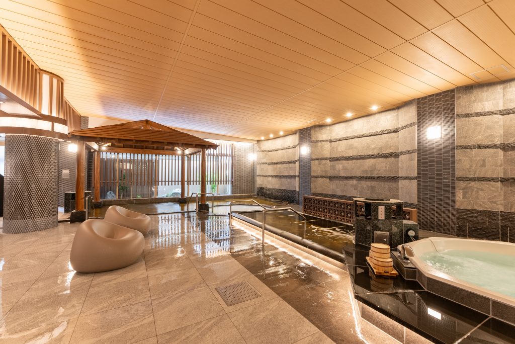 大浴場のリニューアル工事が完了し、新たな大浴場「みなもの湯」が皆様をお迎えいたします。