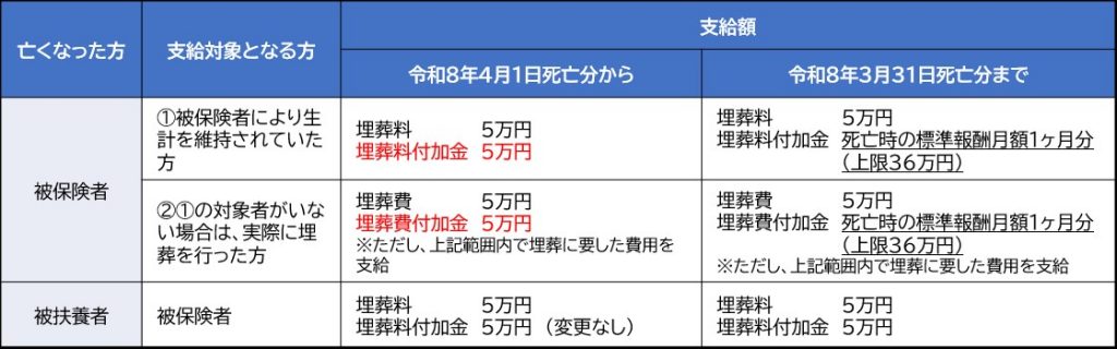 ※変更は「令和8年4月1日死亡分」からです。死亡日が令和8年3月31日以前のご申請については、ご提出時期が令和8年4月以降であっても従前の支給額が適用されます。