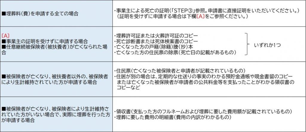 - その他、4/1以降にご用意いただく添付書類の詳細はホームページ(亡くなったとき(埋葬料、埋葬費))をご確認ください。
