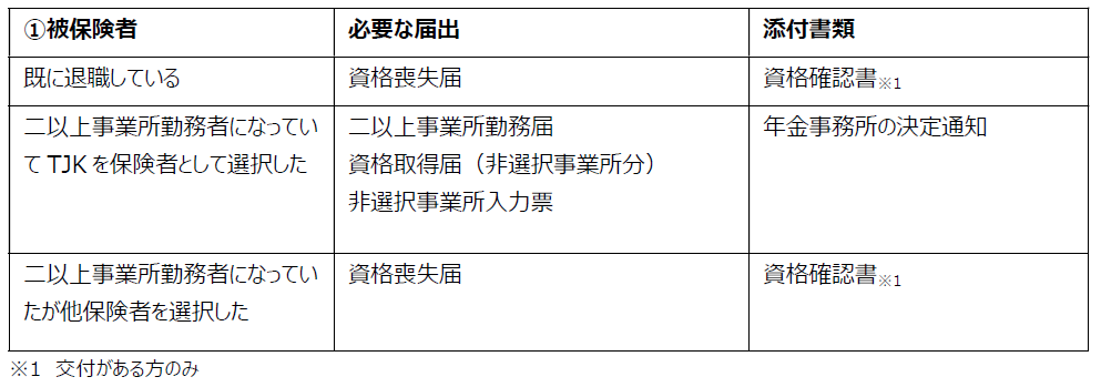 TJKにおいてはこの事務連絡に基づき、資格重複者のいる事業所に対して通知をお送りいたしますので、状況をご確認のうえ、資格喪失・扶養削除のお手続きをお願いいたします。
