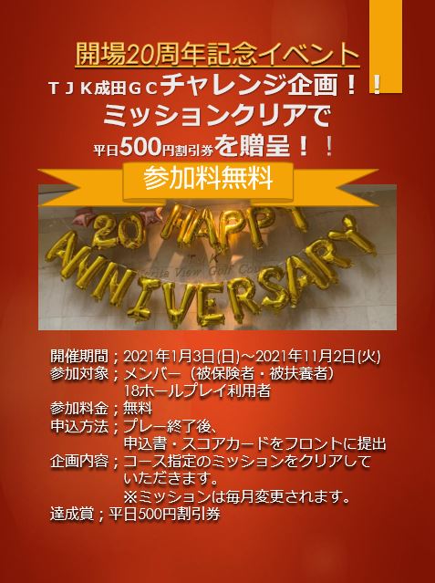 TJK成田ビューゴルフコースは2020年11月3日(火)に開場20周年を迎えました。