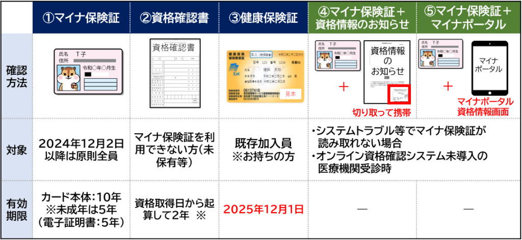 〈資格確認方法一覧〉