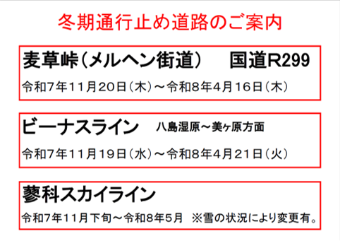 東京方面からお出かけの際は、中央道諏訪南I.Cより八ケ岳エコーライン経由でお出かけください。