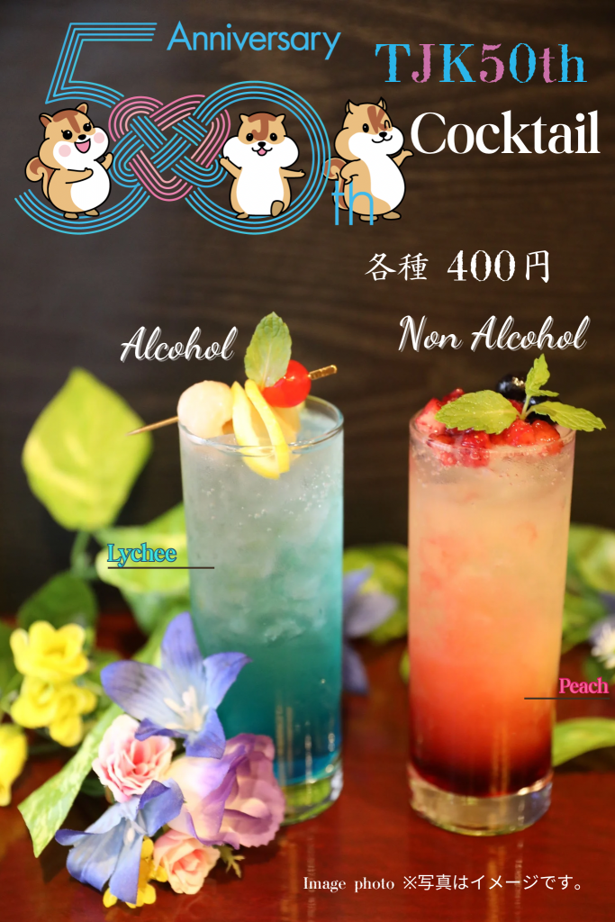 TJK直営施設では、TJK50周年を記念して2種類のオリジナルカクテルをご提供いたします。