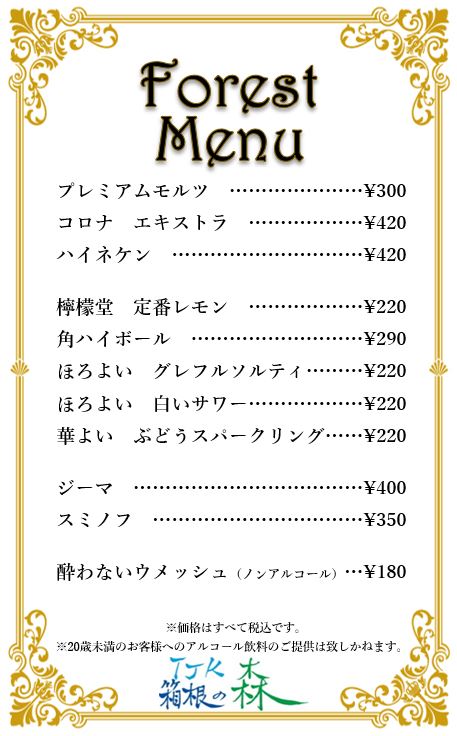 バーフォレストではお酒をお楽しみいただけます。