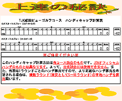 - この計算は1ラウンド毎の計算ですので、より実力に見合ったハンディキャップを希望される方は、複数ラウンド(おおよそ5R~10R)の平均値をハンディキャップとしてください。