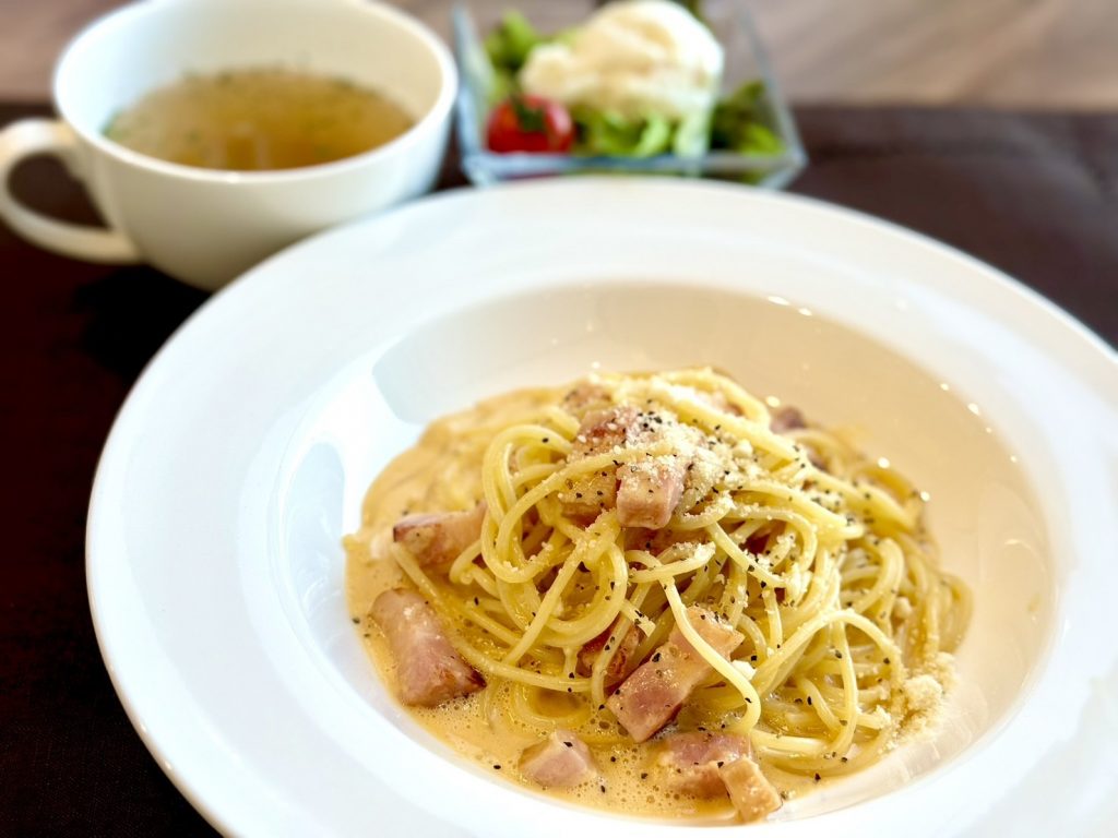 厚切りベーコンのもちもちカルボナーラ 950円