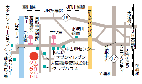 - 「所沢行き」乗車の場合 →「二ツ宮」または「運動場前」下車