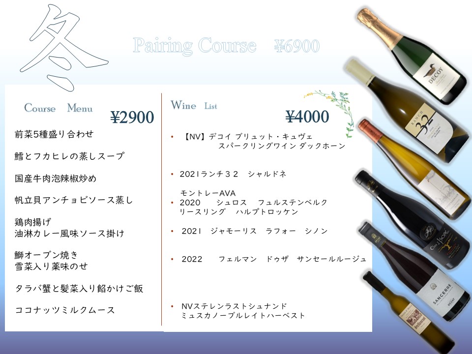 コンタミネーションへのご対応はいたしかねます。 - 食物アレルギーをお持ちのお客様は、お席・コースのご予約時にお申し出ください。