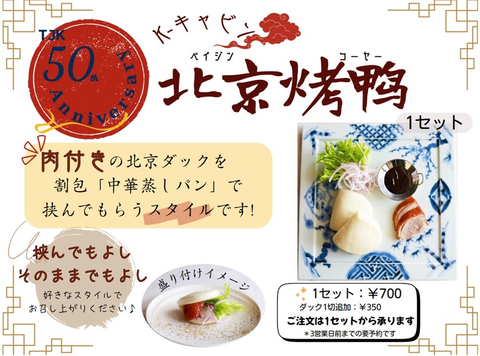 TJK50周年記念 北京烤鴨 【事前予約制】