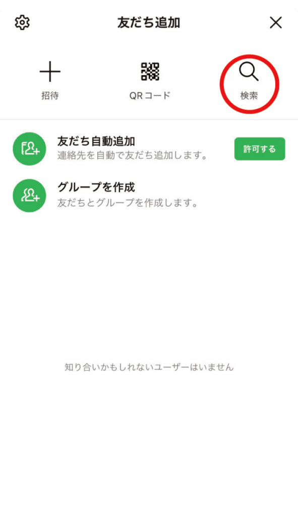 友だち追加画面の中の、「検索」ボタンをタップします。