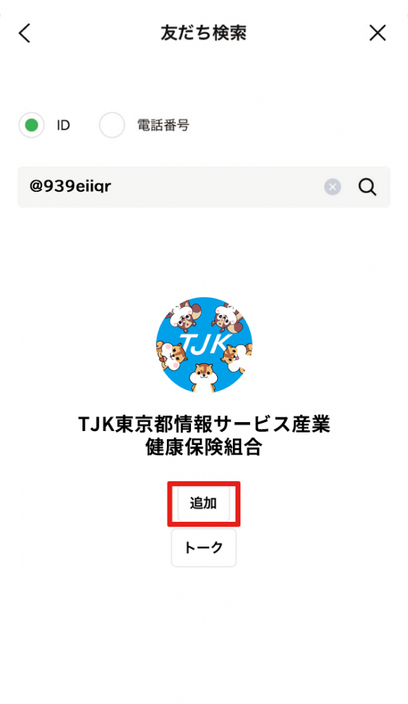 お手元のスマートフォンでLINEアプリを起動し、メニューの「友だち追加」で「ID検索」を選択し、「@939eiiqr」と入力して検索すると、友だち追加ができます。