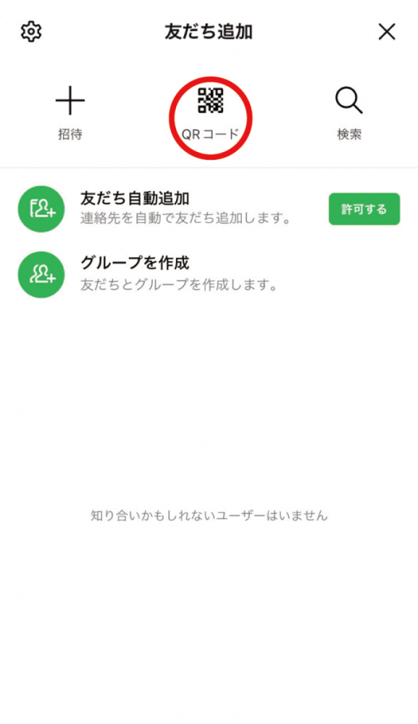 友だち追加画面の中の、「QRコード」ボタンをタップします。