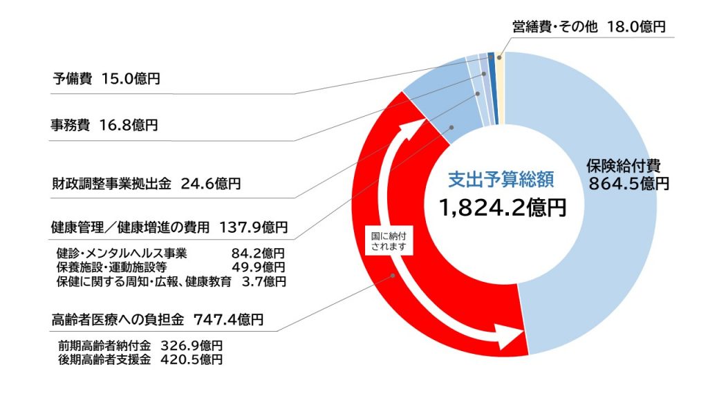 健保組合事業の根幹である医療費および出産時などの現金給付を行うための予算 |